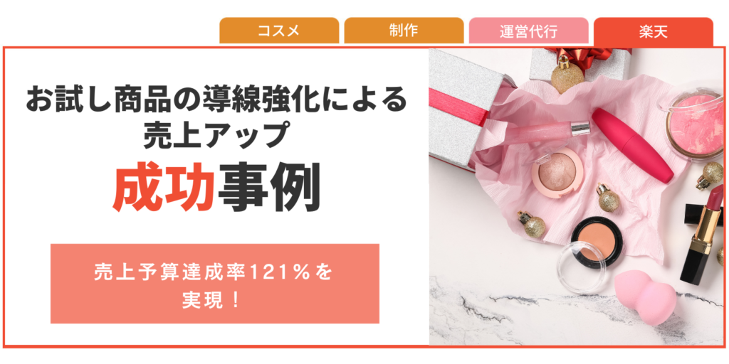 今回は、某コスメメーカーにおけるお試し商品の導線強化とアップセル施策についてです。クライアントはオリジナルブランドのスキンケア化粧品を販売していましたが、モール内での新規顧客獲得において一般キーワードのクリック単価が高騰し、集客コストの悪化や指名検索の獲得不足が課題となっていました。