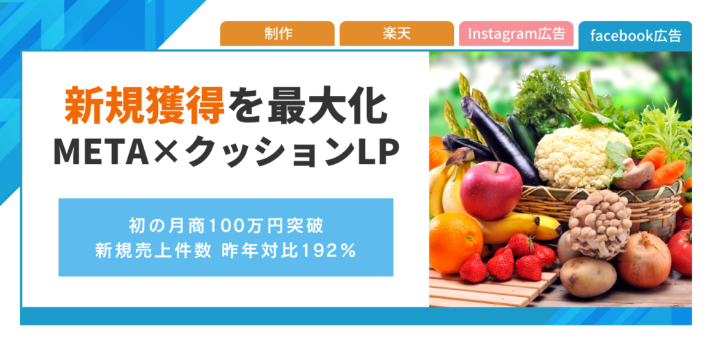 今回は、食品ECにおける外部広告とクッションLPを活用した新規顧客獲得施策についてです。クライアントは水耕栽培による国産野菜を販売する某食品メーカー様で、モール内広告だけではアクセスの劇的な拡大が難しく、新規顧客の獲得が伸び悩んでいる課題がありました。